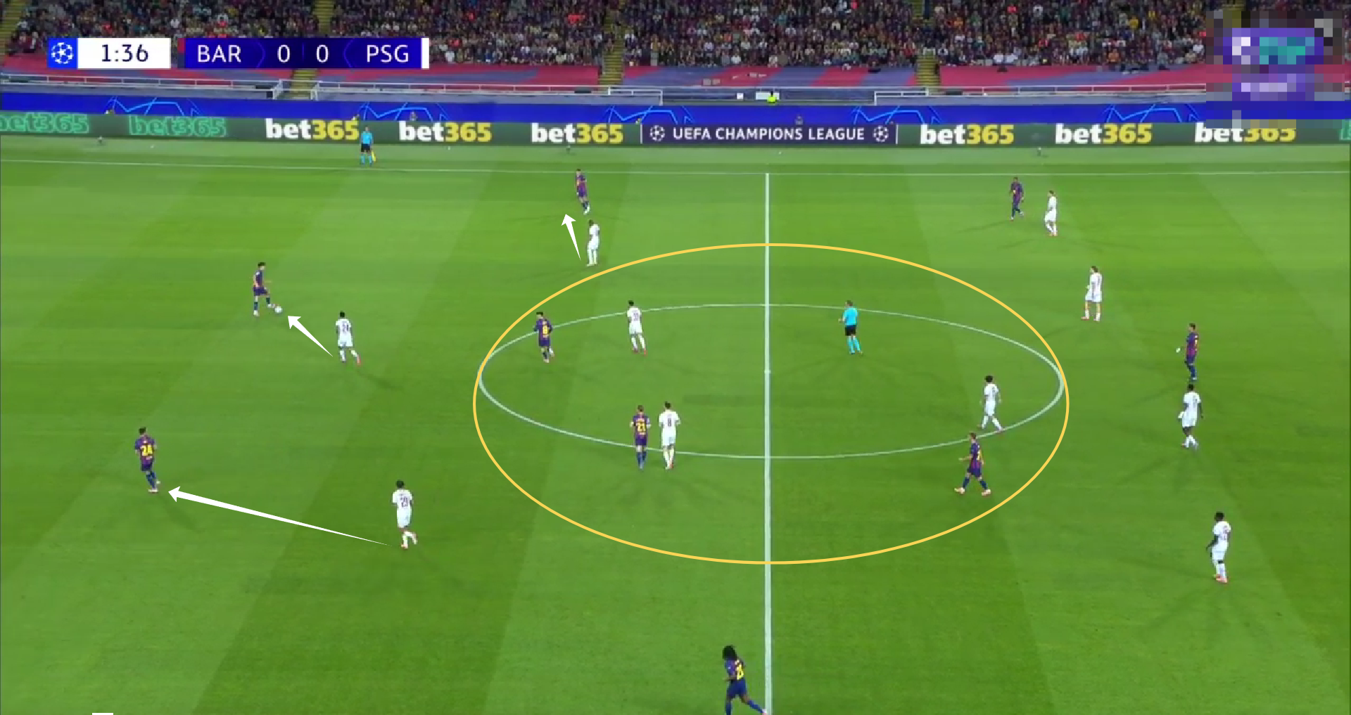 Прессинг – ключевой элемент стиля обеих команд. Вокруг него строится большая часть всей игры. Друг против друга «Барселона» и «ПСЖ» также стремились следовать своим игровым принципам (PPDA: 9.2 против 8.7).