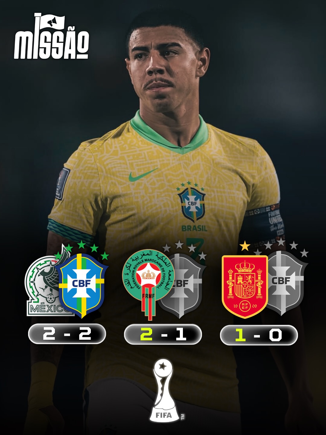 Проиграв ровесникам из Испании, Селесао до 20 лет едет домой. Во втором туре подножку поставили марокканцы 2:1, а в первом туре юные бразилуши разошлись миром с мексиканцами 2:2.