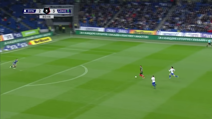 Сама же следующая игра Динамо Мск - Локомотив стала настоящим триллером с захватывающим сюжетом и нелогичным результатом, по крайней мере с точки зрения метрик xG. Все началось с гола Локо на первой минуте, когда случилась классическая быстрая атака от Галактионова, начатая пасом опорного полузащитника на фланг