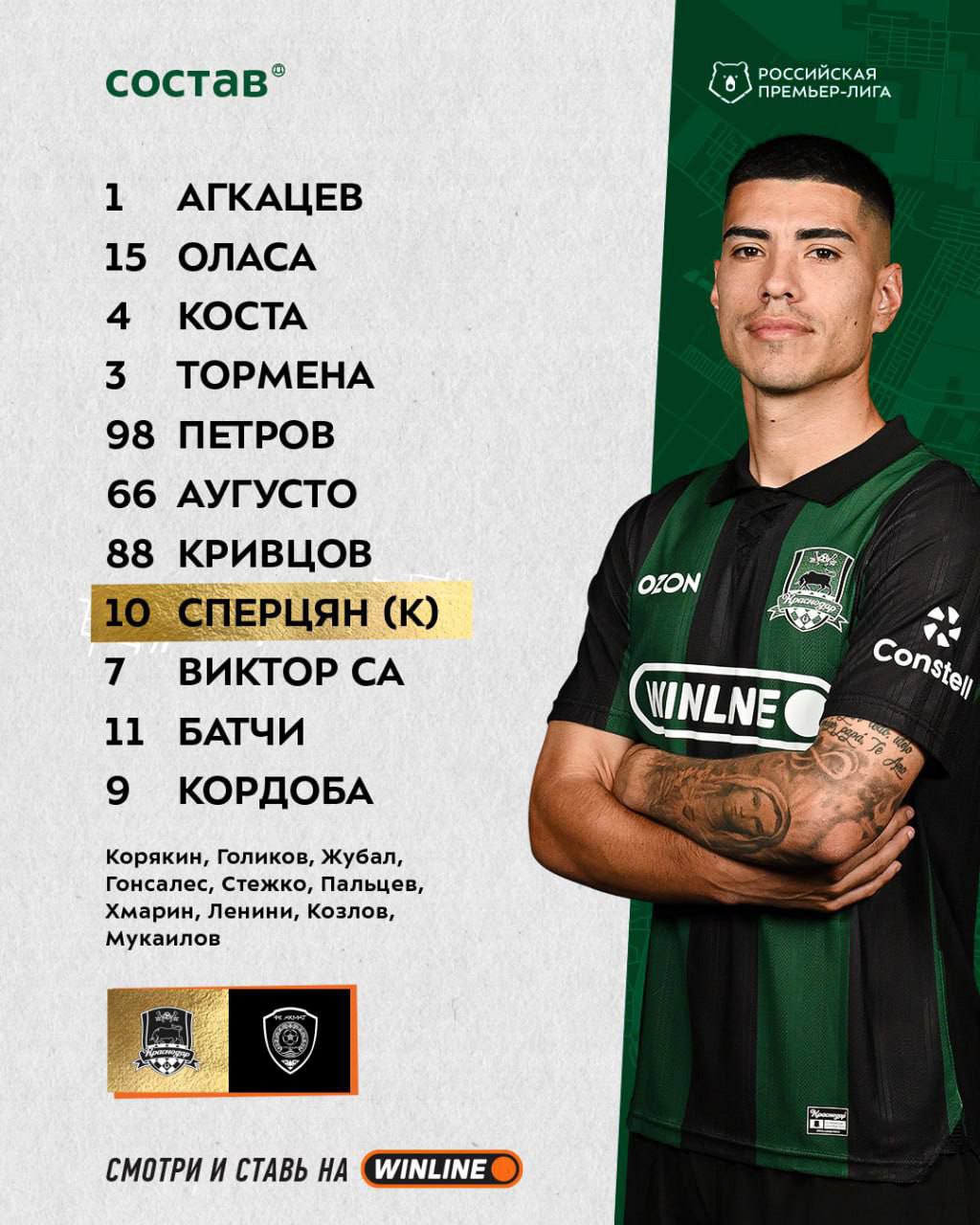 Также из-за повреждения вне заявки остался Перрен – выход Батчи справа в атаке с первых минут был очевиден. И лично у меня есть некоторое ощущение, что отсутствие Гаэтана даже пошло команде на пользу, ведь наконец-то отличный матч провел Сперцян. Возможно, из-за того, что не пришлось делить свой любимый левый полуфланг с французом, но пока теория недостаточно проверенная.