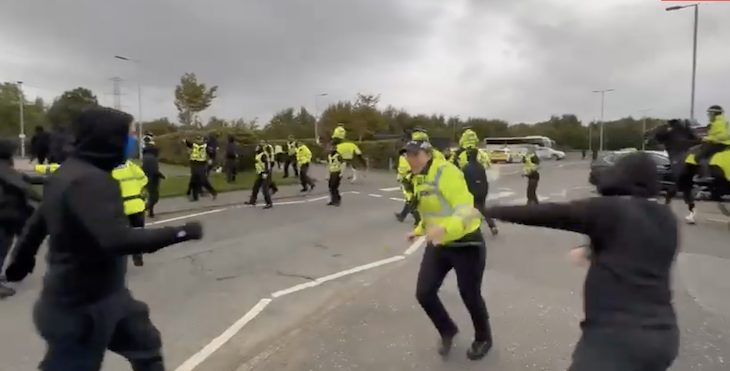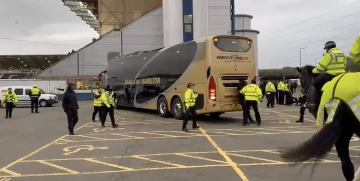 Фанаты заблокировали автобус, тренера вывели с черного хода при сопровождении полиции