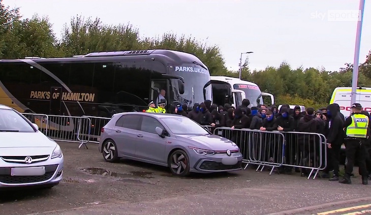 Выездные ультрас пели и заряжали кричалки против Мартина еще по ходу игры – даже когда «Рейнджерс» повели в счете.