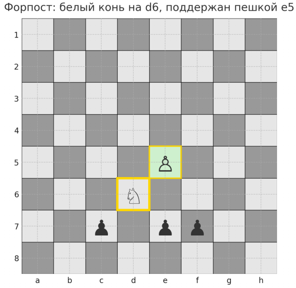 Форпост | Опорное поле для коня, защищенное своей пешкой и труднодоступное для соперника. |