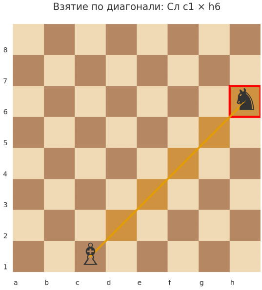 Как слон бьет фигуры (взятие по диагонали)