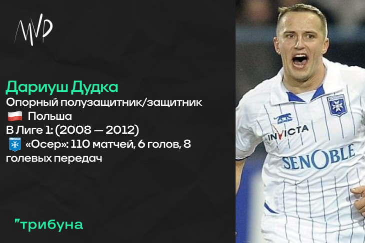 Когда мы вспоминаем «Осер» и футболистов из Польши, выступавших там, первым на ум приходит форвард Ирениуш Елень. Но в этой подборке я решил упомянуть другого восточноевропейца, игравшего на «Аббе-Дешам» — игрока защитной линии Дариуша Дудку. Имя этот футболист сделал себе ещё на родине, где сначала долго представлял клуб «Амика» (на данный момент расформирован), а затем краковскую «Вислу», с которой единожды даже стал Чемпионом Польши. Таким образом, во Францию Дариуш перебирался уже весьма опытным игроком, имеющим за своими плечами также и матчи за национальную сборную страны. «Осер» заплатил за поляка 2.50 миллиона Евро летом 2008 года, что стало самым дорогим подписанием для клуба в том сезоне. В новой для себя среде Дудка поначалу выступал неплохо, но к середине сезона потерял место в основе.