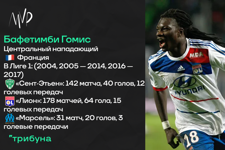 Включение Бафетимби Гомиса в выпуск, думаю, очевидно. Я, как автор, не скрываю своих фанатских предпочтений — именно «Лион» с французским форвардом на острие атаки влюбил меня в себя в начале десятых годов. Бафе сразу стал одним из любимых футболистов — яркая внешность (дреды, собранные в хвост и «львиное» выражение лица), продуктивная игра в нападении с голами на любой вкус… Это всё, конечно, повлияло. Но среди фишек Гомиса особняком стоит его манера праздновать голы, имитируя движения хищной кошки. Однажды, наш герой этим напугал мальчика, подающего мячи у бровки, за что после извинился. Что ещё? Периодически, нападающий падал в обмороки на тренировках. А ещё он просто очень долго был на слуху, даже после отъезда из топ-лиг. Безусловно, Бафетимби — одна из самых ярких персон Лиги 1 той эпохи.
