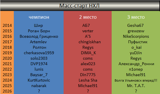 Призёры будут навечно вписаны в Зал Славы масс-стартов.
