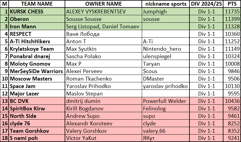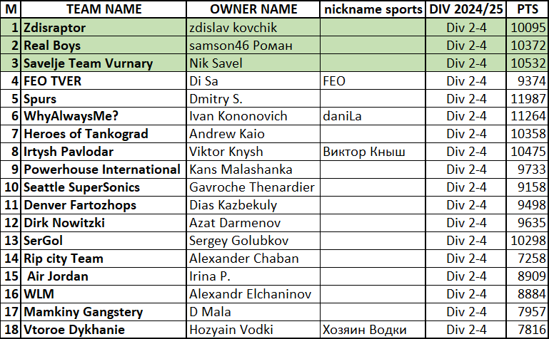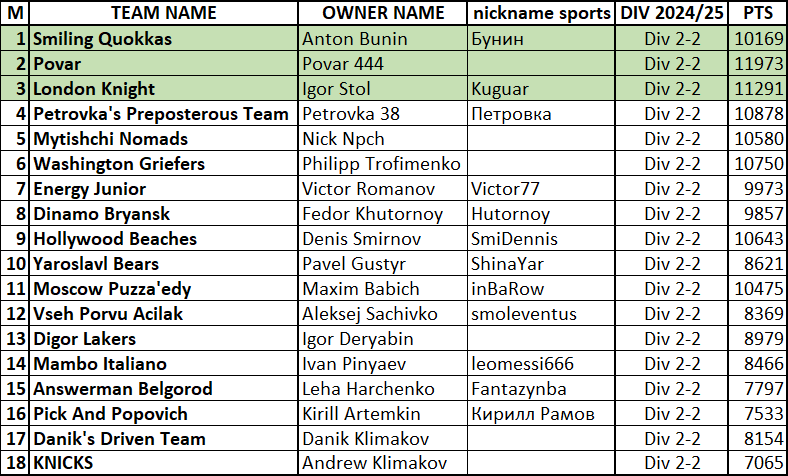 ИТОГИ СЕЗОНА 2024/25 (гуглодок)