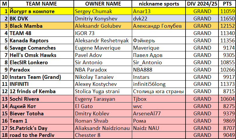 - Из Grand Дивизиона вылетают 6 худших команд