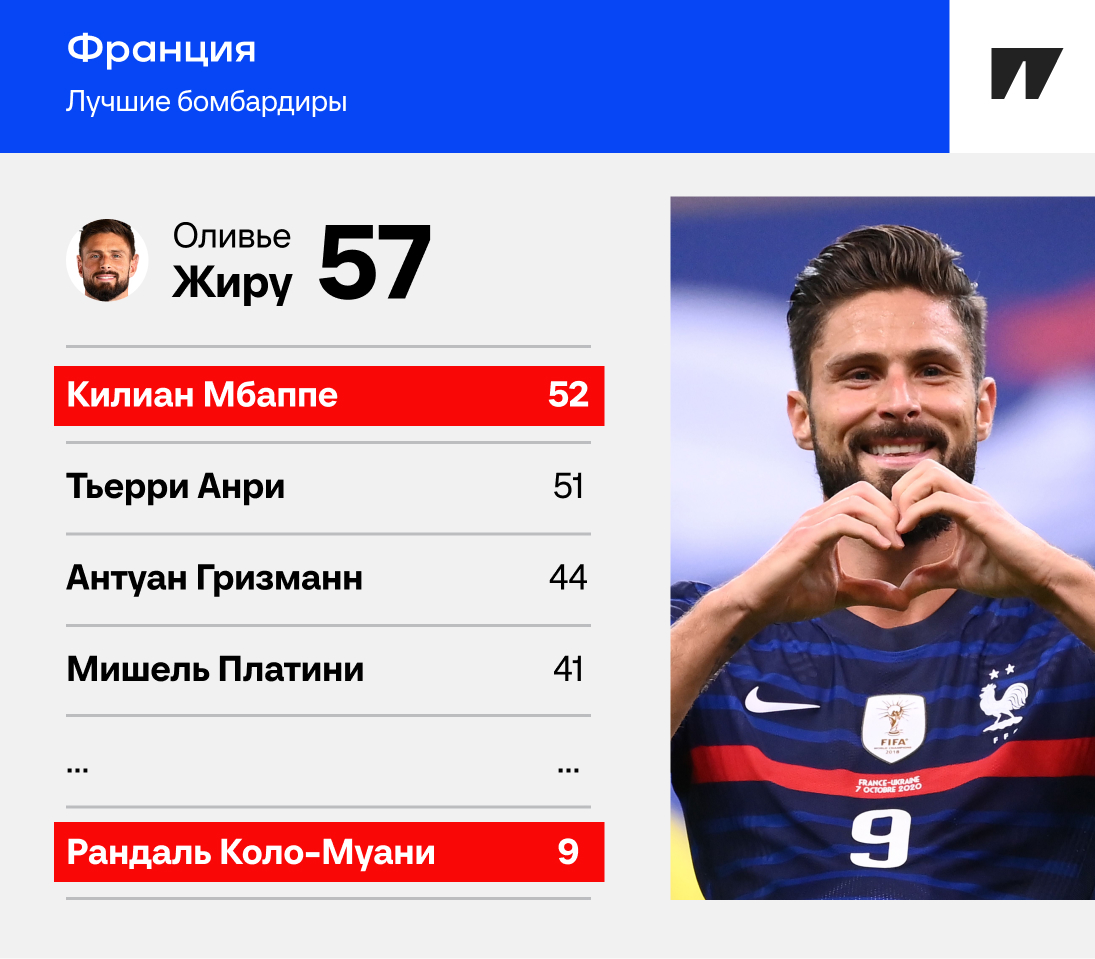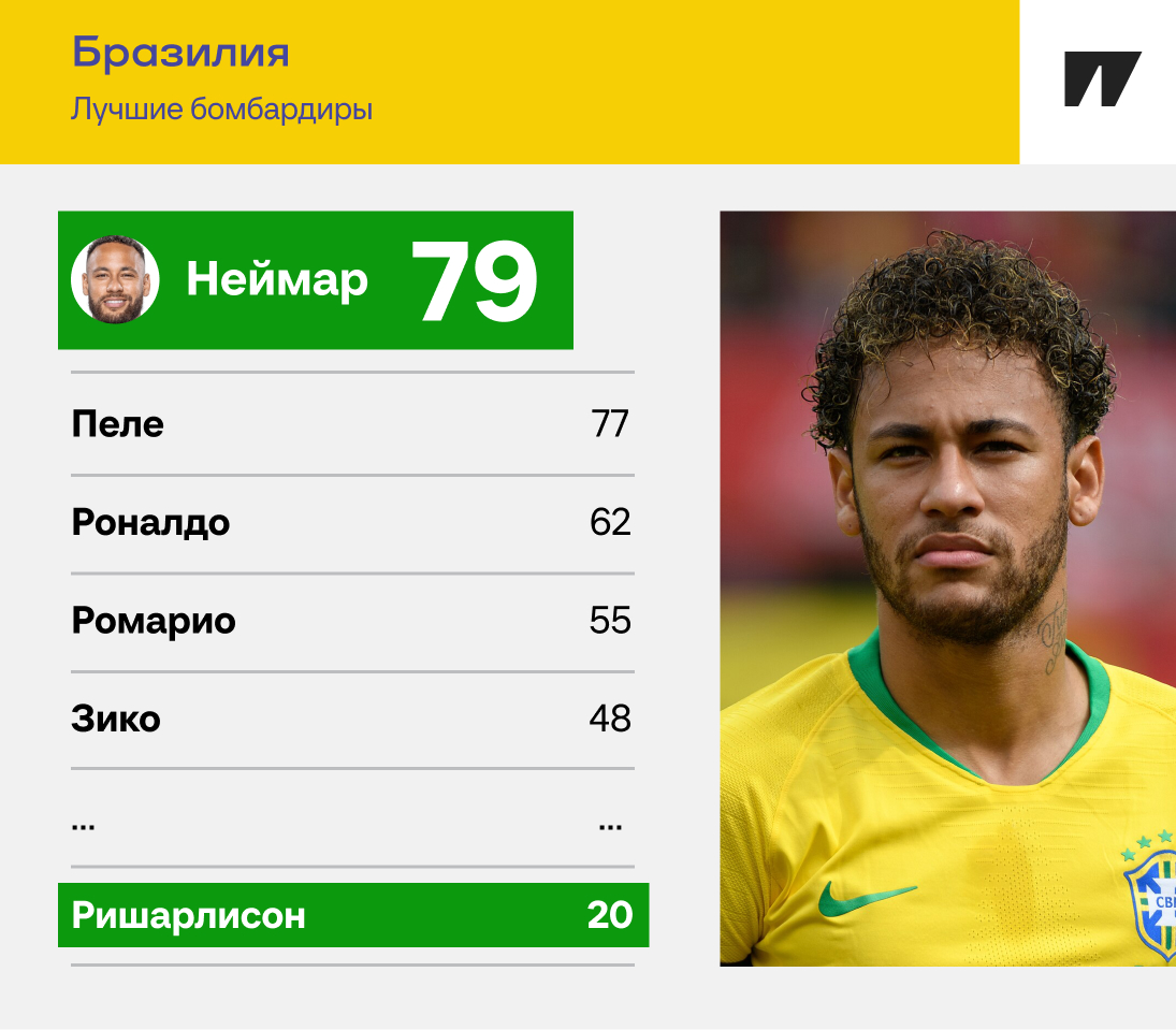 А кто еще лидирует в списке лучших бомбардиров топ-сборных и кто их ближайшие преследователи среди действующих футболистов? Ниже – 15 ответов, игроки, способные поправить свою статистику, выделены цветом.
