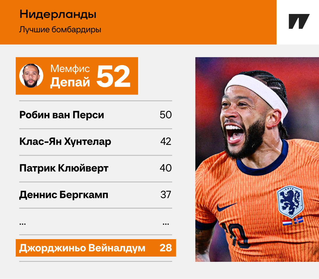 7 сентября Мемфис Депай забил два мяча в матче с Литвой и стал лучшим бомбардиром в истории сборной Нидерландов. Легкий шок, учитывая что позади остались Робин ван Перси и Клас-Ян Хунтелар.