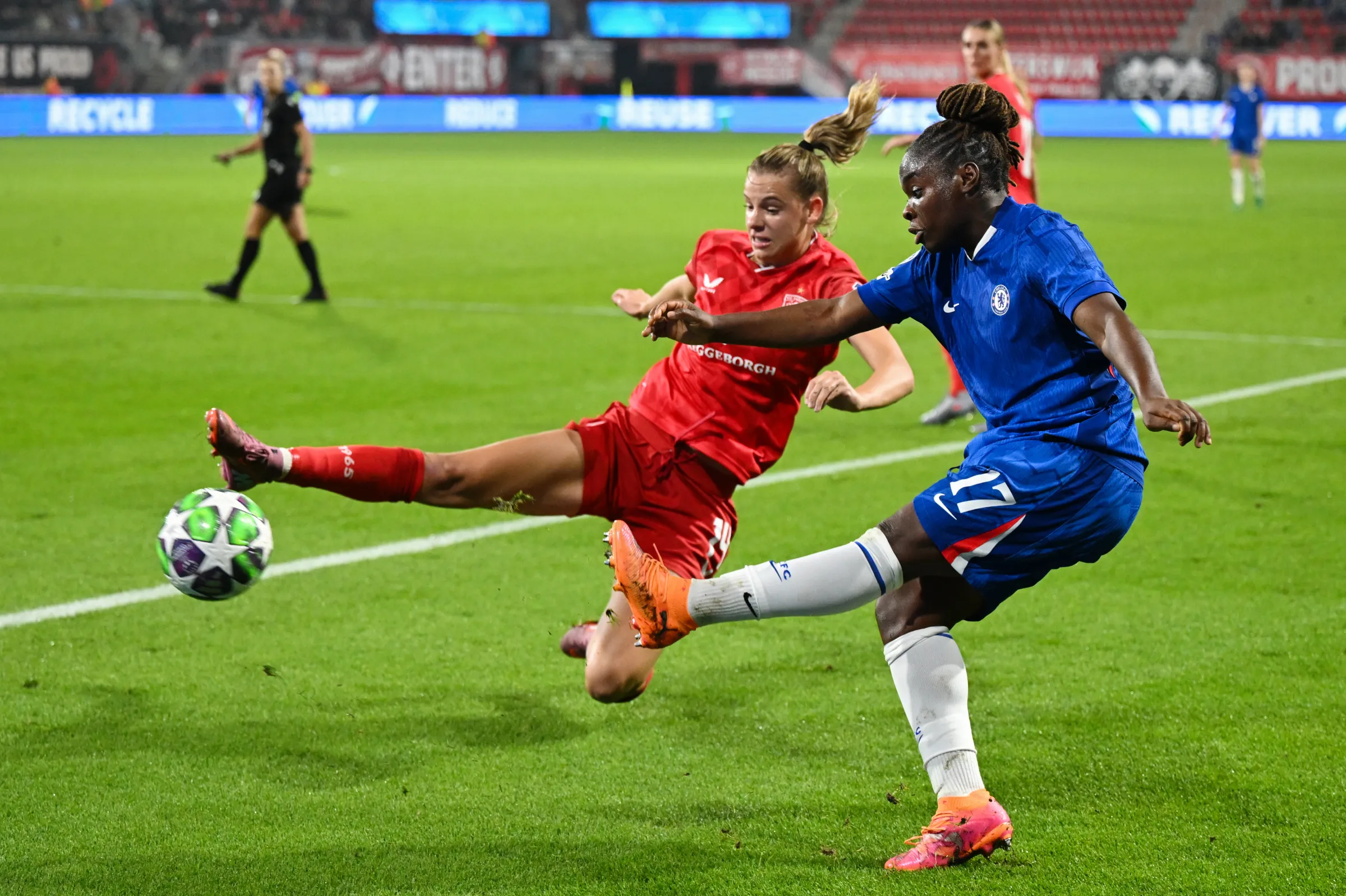 «Волеренга» нанесла всего один удар в створ ворот Фэллон Таллис-Джойс. Зато они помешали забить норвежке Элизабет Терланд – Сара Херте и Микаэла Ковач блокировали ее удары.