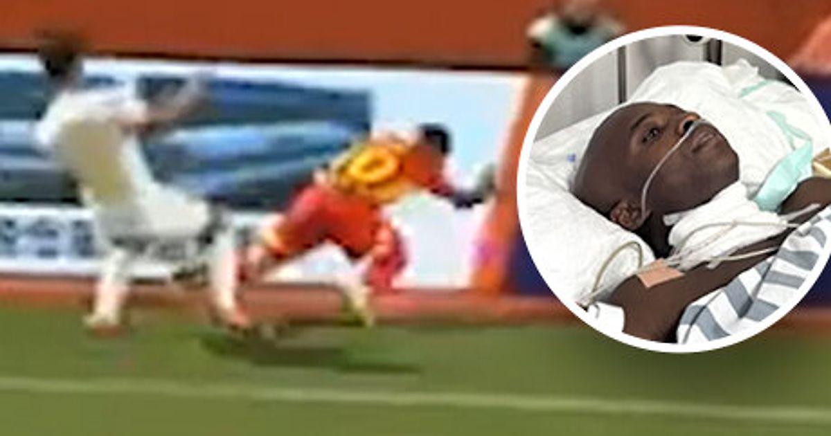 Трагедия во втором дивизионе Китая: нападающий Самуэль Асамоа ударом о рекламный щит сломал шею. Может стать инвалидом.