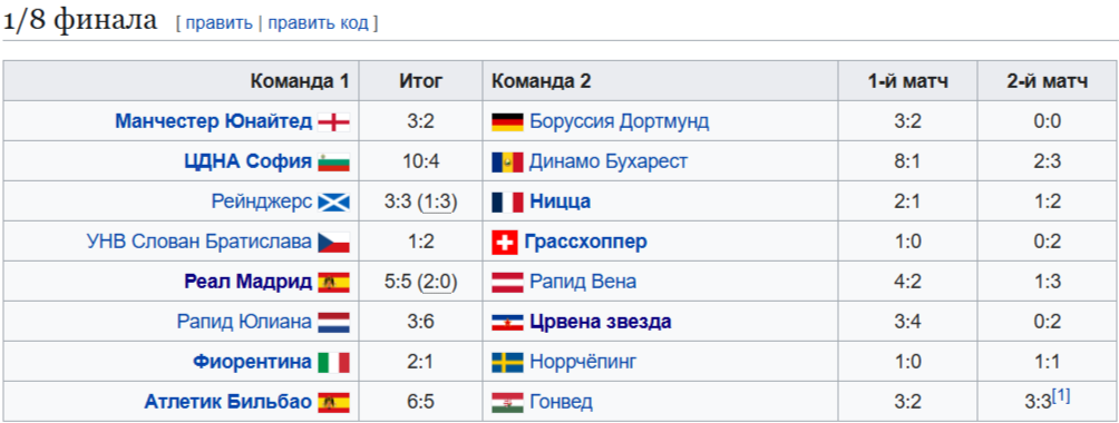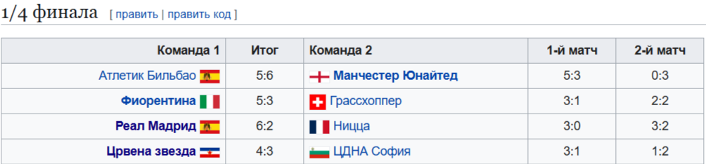 Четвертьфинальные встречи получились сверхрезультативными и судьбу трех из четырех противостояний лишили 1-2 мяча. В полуфинал пробились «Црвена Звезда», «Фиорентина», «Реал» и «Манчестер Юнайтед». Полуфинальная схватка последних должна была стать украшением всего турнира.
