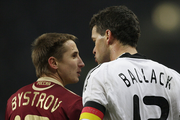 Во втором тайме Россия прижала немцев: мощная десятиминутка в начале с сэйвами Адлера после ударов Аршавина, добиванием Кержакова, попыткой Быстрова ножницами, шансом Семшова в быстрой атаке, спорным единоборством Аршавина и Михаэля Баллака и стопроцентным пенальти на Быстрове в конце.