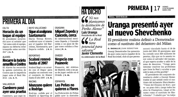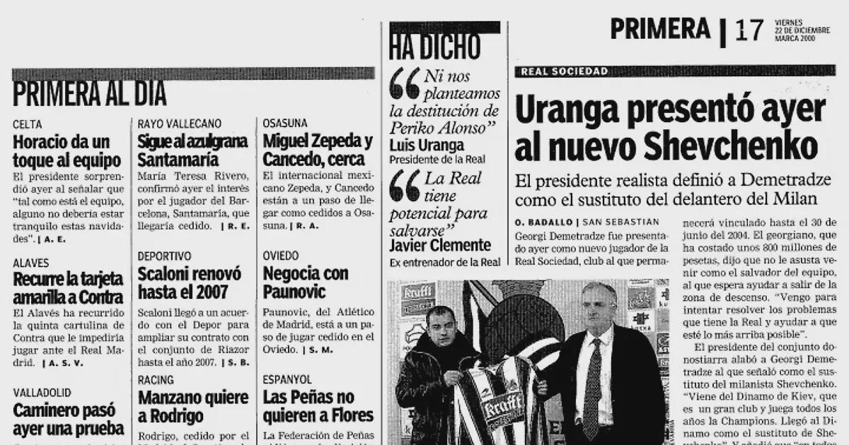 21 декабря его представили как «нового Шевченко», по словам президента «Реала Сосьедад» того времени Луиса Уранги. На самом деле Деметрадзе пришел в Динамо в 1999 году, как раз когда «Милан» подписал Андрея Шевченко. До Киева он играл за «Фейеноорд», который подписал его из «Динамо» Тбилиси.