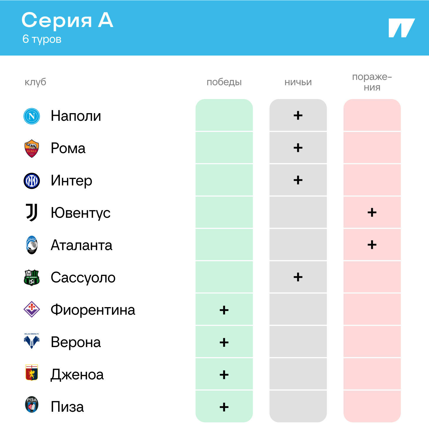 У аутсайдеров пока выделяется «Фиорентина»: «фиалки» без побед в шести турах, но пока все же еще не в зоне вылета.