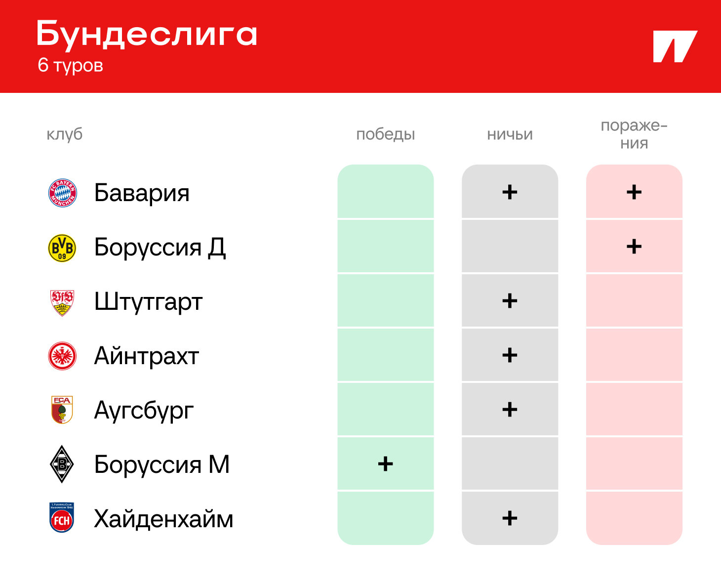 В Германии сыграли только шесть туров – нолей еще много. «Бавария», естественно, выделяется. Пока это единственная команда в топ-лигах вообще без потерь. Добавим, что у «Баварии» нет осечек и в Кубке Германии, и в Лиге чемпионов – идеальный график.