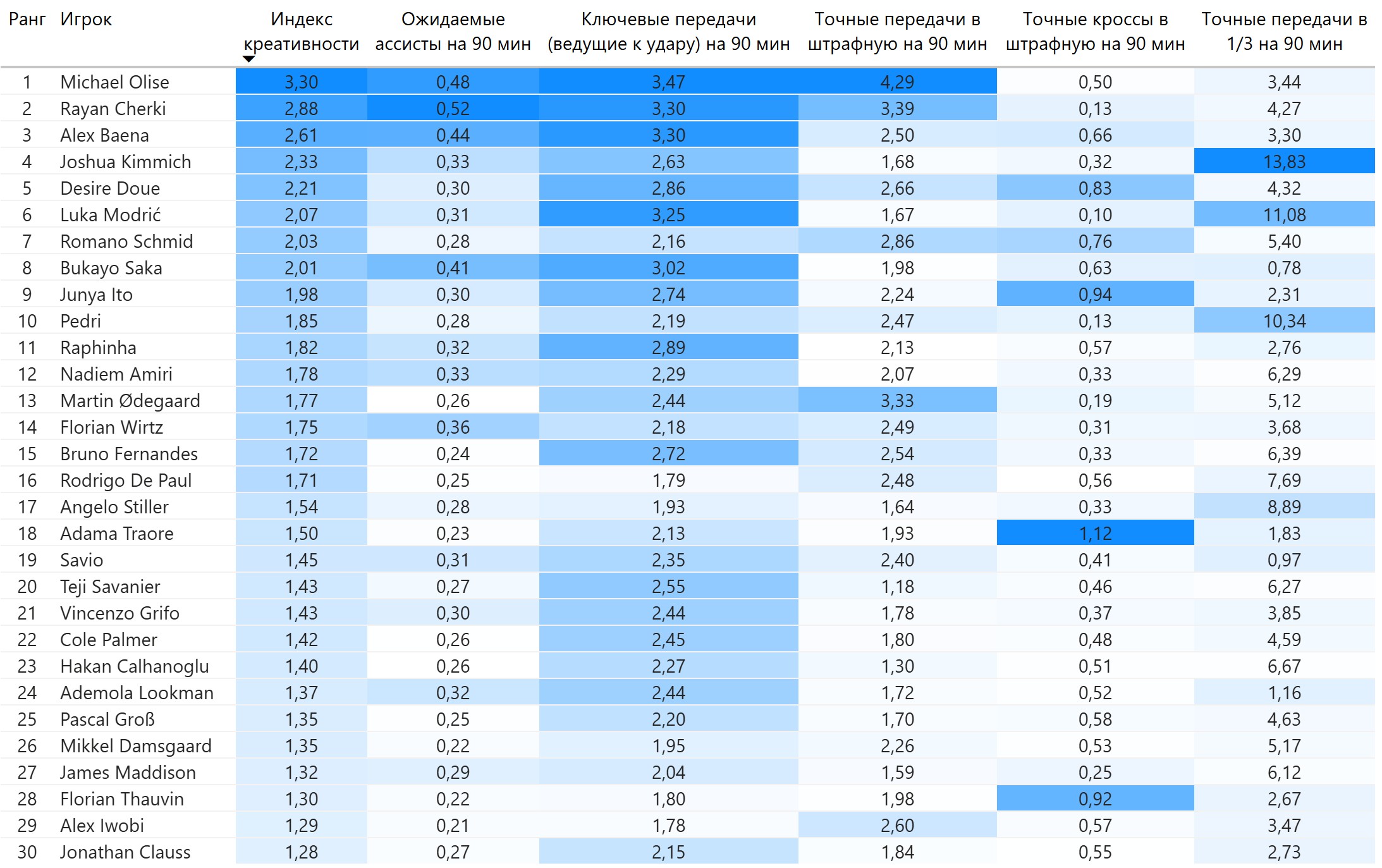 Ключевые передачи: 🥇Майкл Олисе; 🥈 Райан Шерки; 🥉 Алекс Баэна