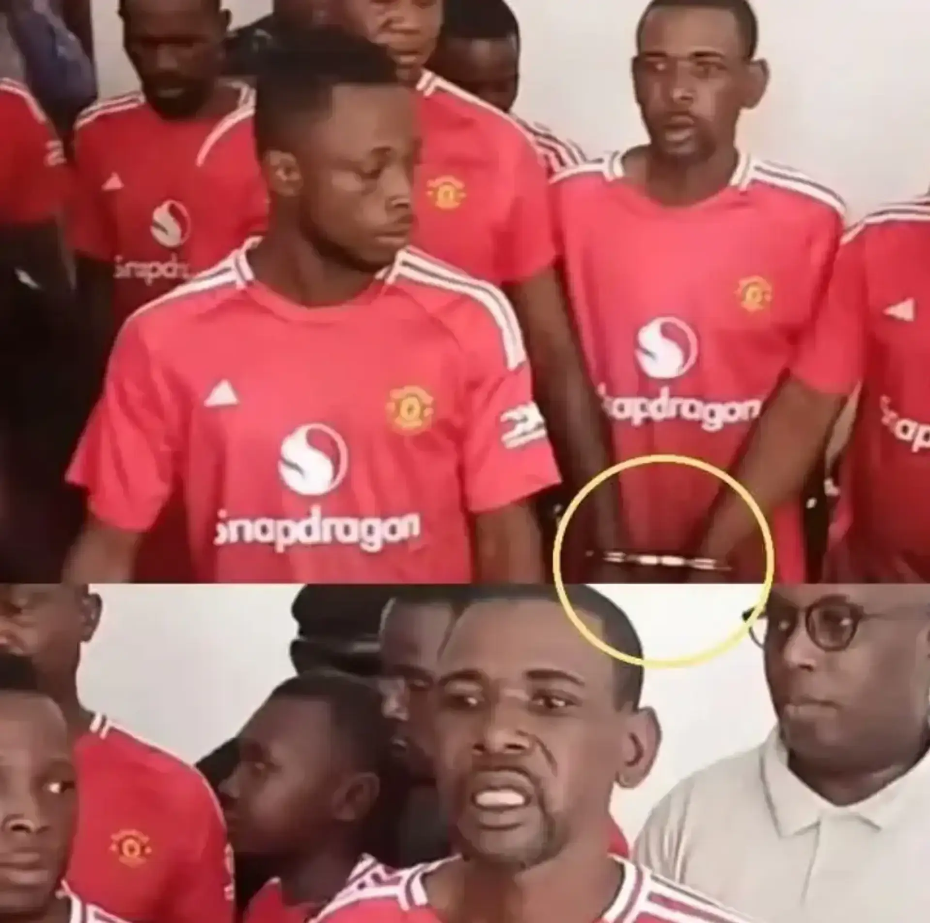 В Конго заключенных одевают не в тюремные роба, а в футболки «Манчестер Юнайтед». Фото из полицейского участка мгновенно разлетелось по сети: люди в наручниках — и все в домашней форме «МЮ».