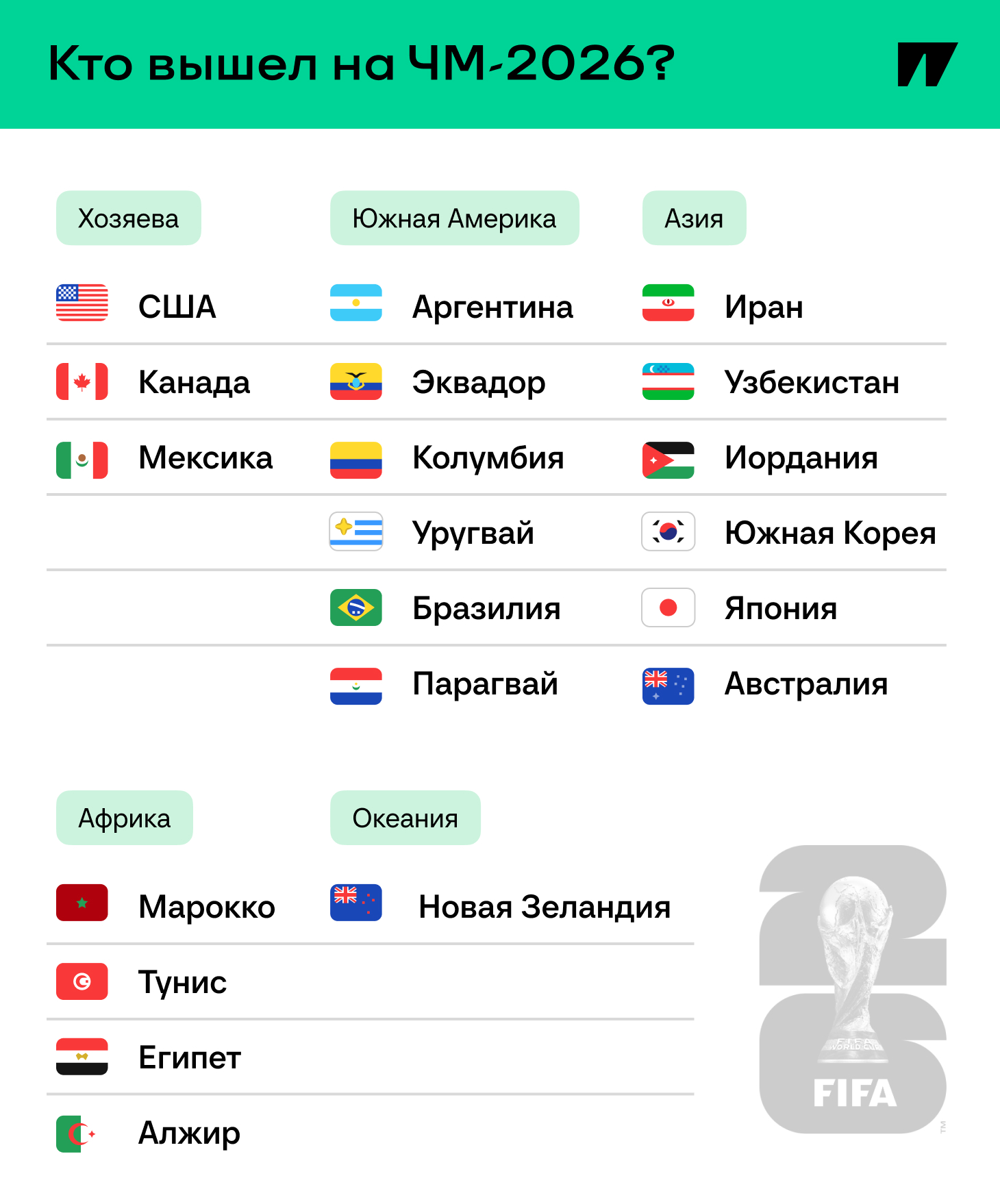 ЧМ-2026 объединит 48 участников, 20 из которых уже попали на турнир официально. Обновляем список финалистов.