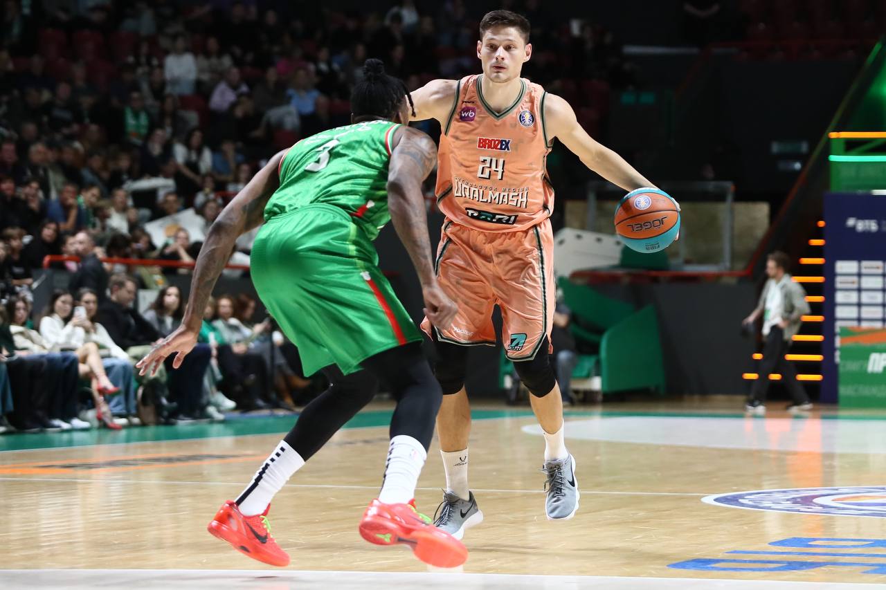 Стабильно игроки хозяев не могли попасть из-за дуги, но отличная игра на чужом щите позволяла им это исправлять. Особенно отличался в этом Беленицкий, который за всю игру забрал 4 отскока на чужом щите. Свою универсальность в этой встрече продолжил демонстрировать Бингэм. Маркус получил мяч на дуге и прорвался под кольцо, набрав два очка. Открытый дальний промахнулся Даглас, что привело к трехочковому от Пьера и тайм-ауту «Уралмаша». После минутной паузы Джавонте красиво забил сверху. На паркет вышел Рэйнольдс, который сразу сделал ассист на Пьера и набрал 2+1 из-под кольца. За минуту до конца Карданахишвили потерял мяч, а Абдулбасиров набрал легкие 2 очка. Закончилась четверть штрафными Рэйнольдса