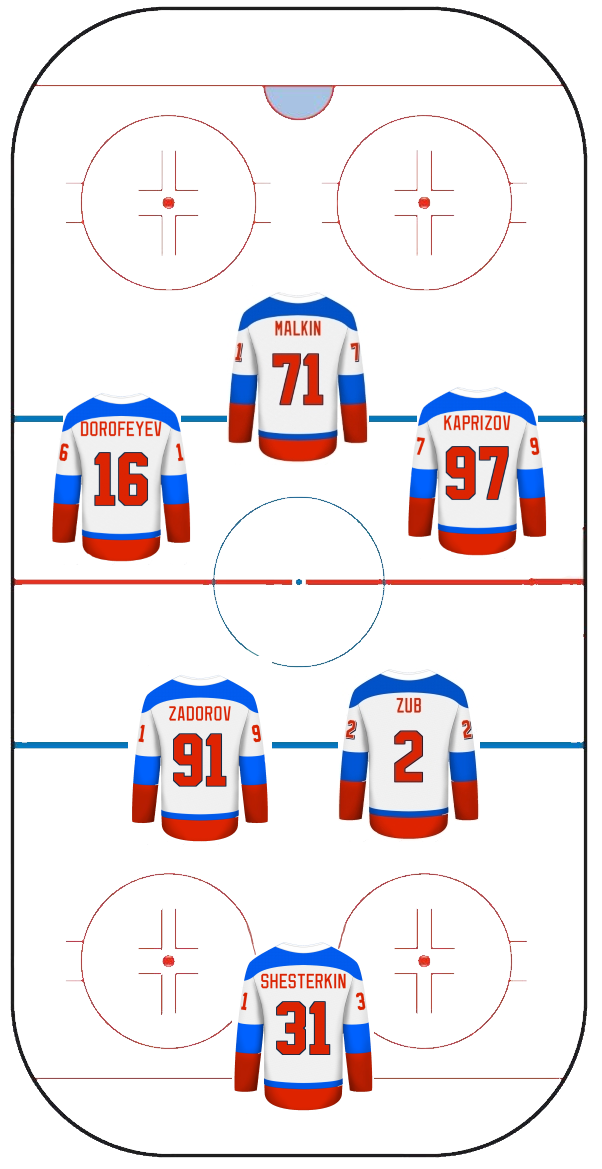 Каждая сборная будет состоять из 5 полевых игроков (3 нападающих, 2 Защитника) и 1 вратаря. Нападающие и защитники не будут градироваться на четкие позиции. Поэтому в составе одной команды могут оказаться 3 крайних форварда или 2 защитника с одним хватом – в лучших традициях символических сборных.