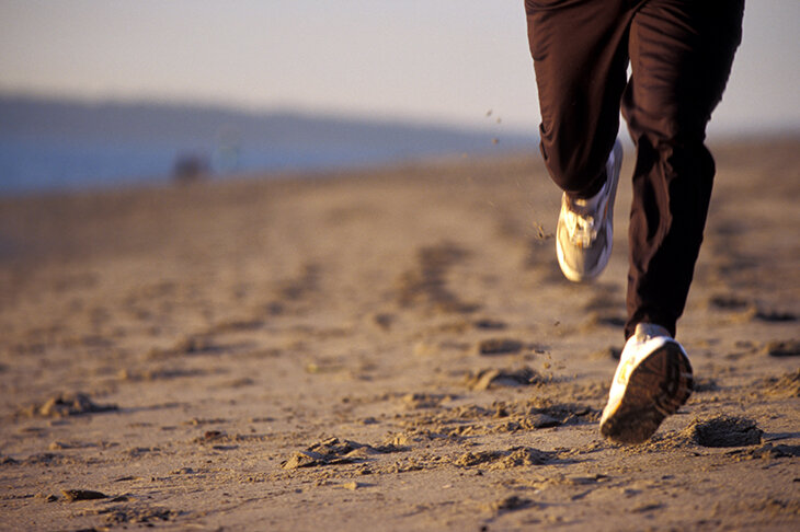 - cкоростные интервалы (8-10 раз): бег по ровной поверхности 2 мин на высоком темпе (интенсивность около 7-8 из 10) через 2 минуты легкого бега;