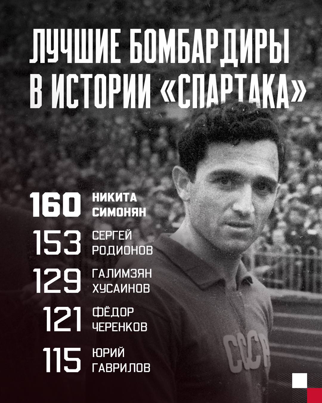 Клуб Григория Федотова. С учетом голов за «Крылья Советов» и сборную страны в активе Симоняна 183 мяча. Из игроков, выступавших за «Спартак», этот показатель смог улучшить только Роман Павлюченко.