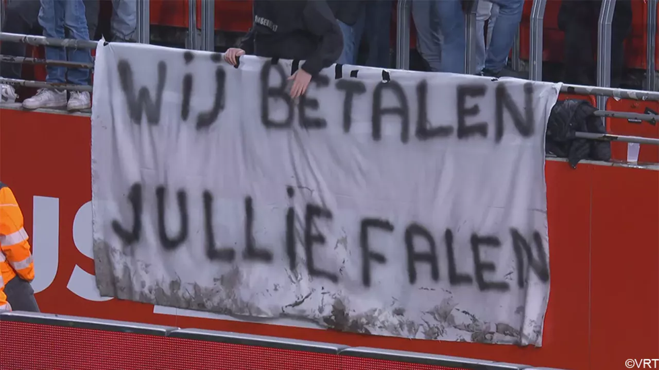 Фанаты «Антверпена», недовольные результатами любимой команды, вывесили баннер: «Мы платим, а вы лажаете» (фото ниже). Главный тренер «Антверпена» утверждает, что баннера не видел, и говорит, что «болельщики полностью поддерживали команду, особенно после первого тайма».