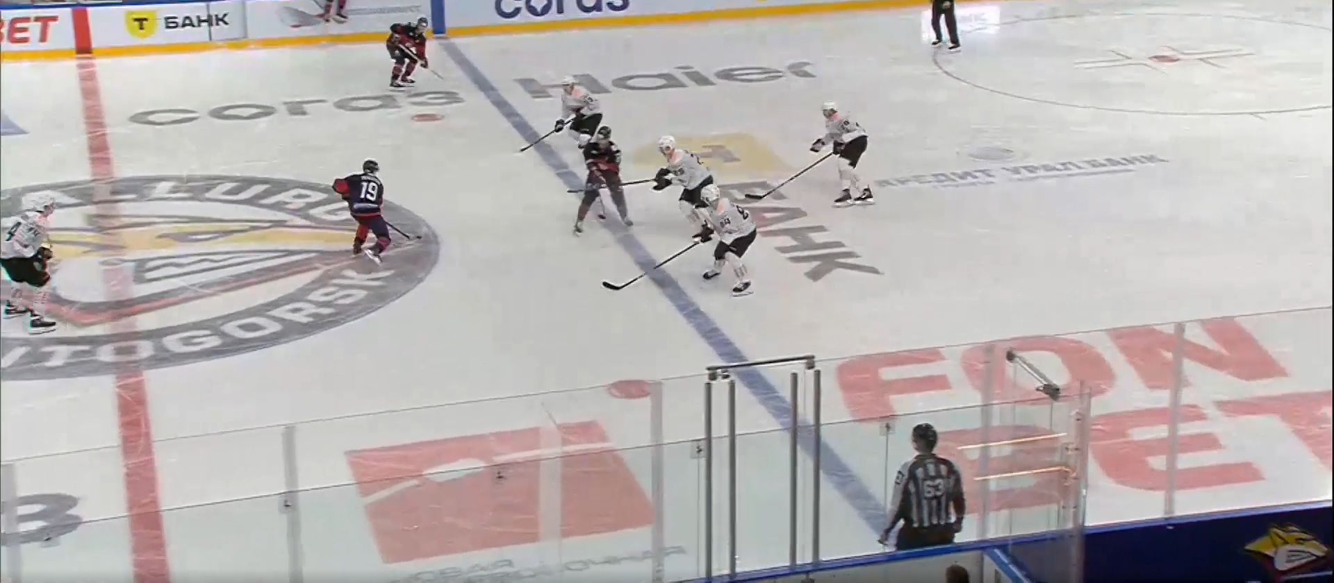 Переходя к сопернику «ястребов», могу сказать, что у них подобных провалов не наблюдалось. Команда, наоборот, находилась в хорошей форме, имея за спиной серию из 5 победных матчей подряд. В текущей же встрече команда лишь ближе к эпицентру первого периода стала показывать, почему она является одной из топовых с точки зрения смотрибельности. Главным акцентом, на который «Магнитка» ставит по ходу всех игр под руководством Разина, являются быстрые передачи, молниеносный переход из одной фазы в другую и, конечно, поперечные передачи, которые не раз позволяли «хозяевам» ломать оборону соперника.