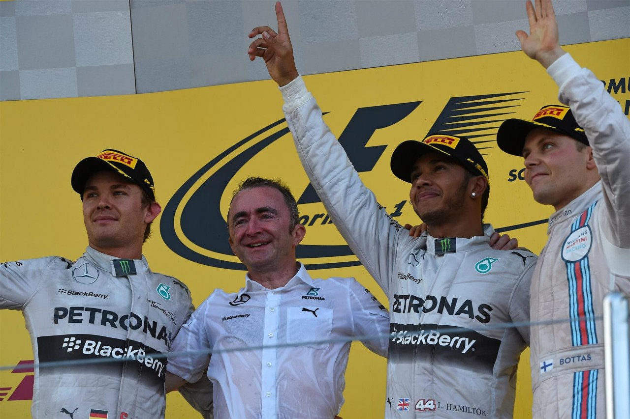 Первым старт-финишную линию пересекает Льюис Хэмилтон (ныне семикратный чемпион мира). Команда Mercedes забирает сразу два места - второе занимает Нико Росберг. Закрывает тройку победителей Валтери Боттас из команды Williams.