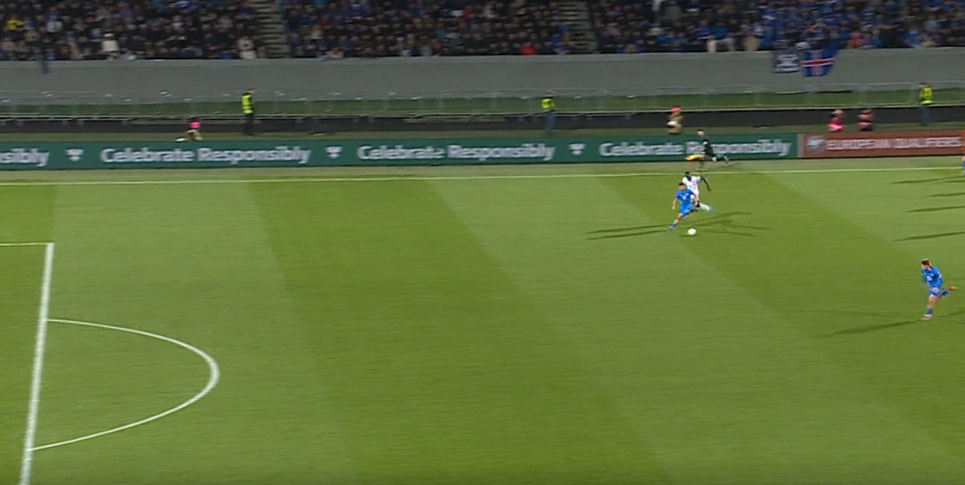21-летний Кристиан Хлинссон четко переиграл вратаря – 2:2. У Исландии два гола с двух ударов в створ за матч.