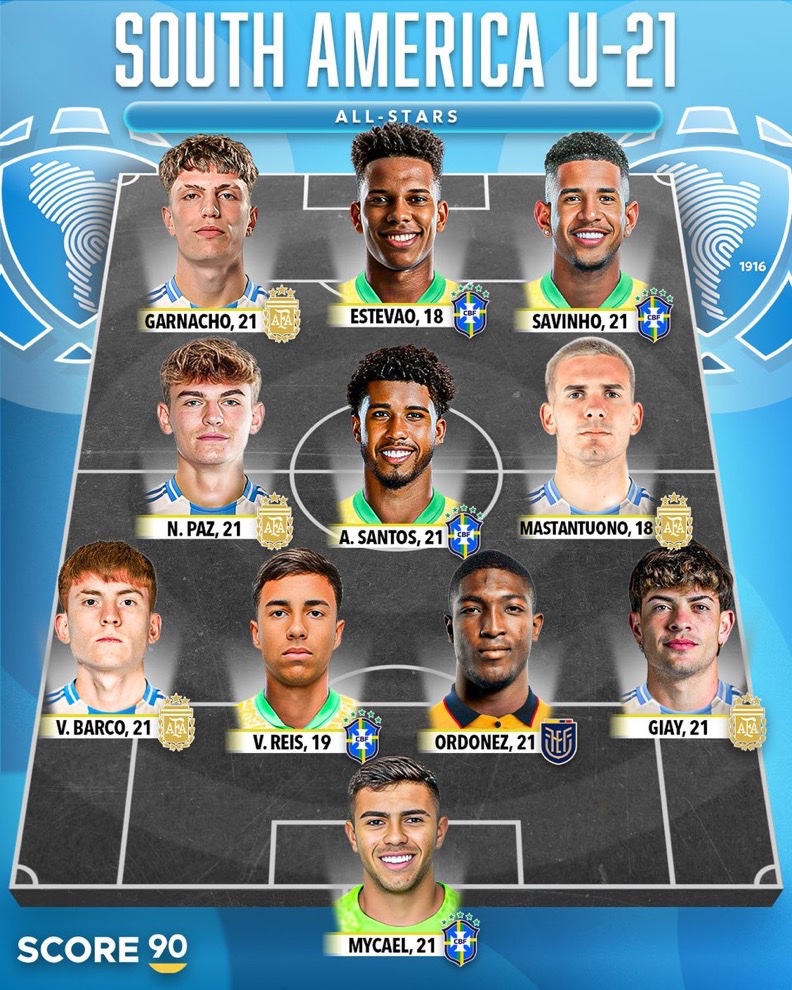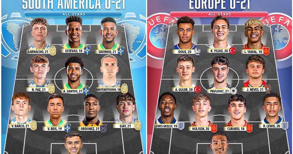 Портал Score 90 предложил сравнить лучшие составы молодых игроков из Южной Америки и Европы.