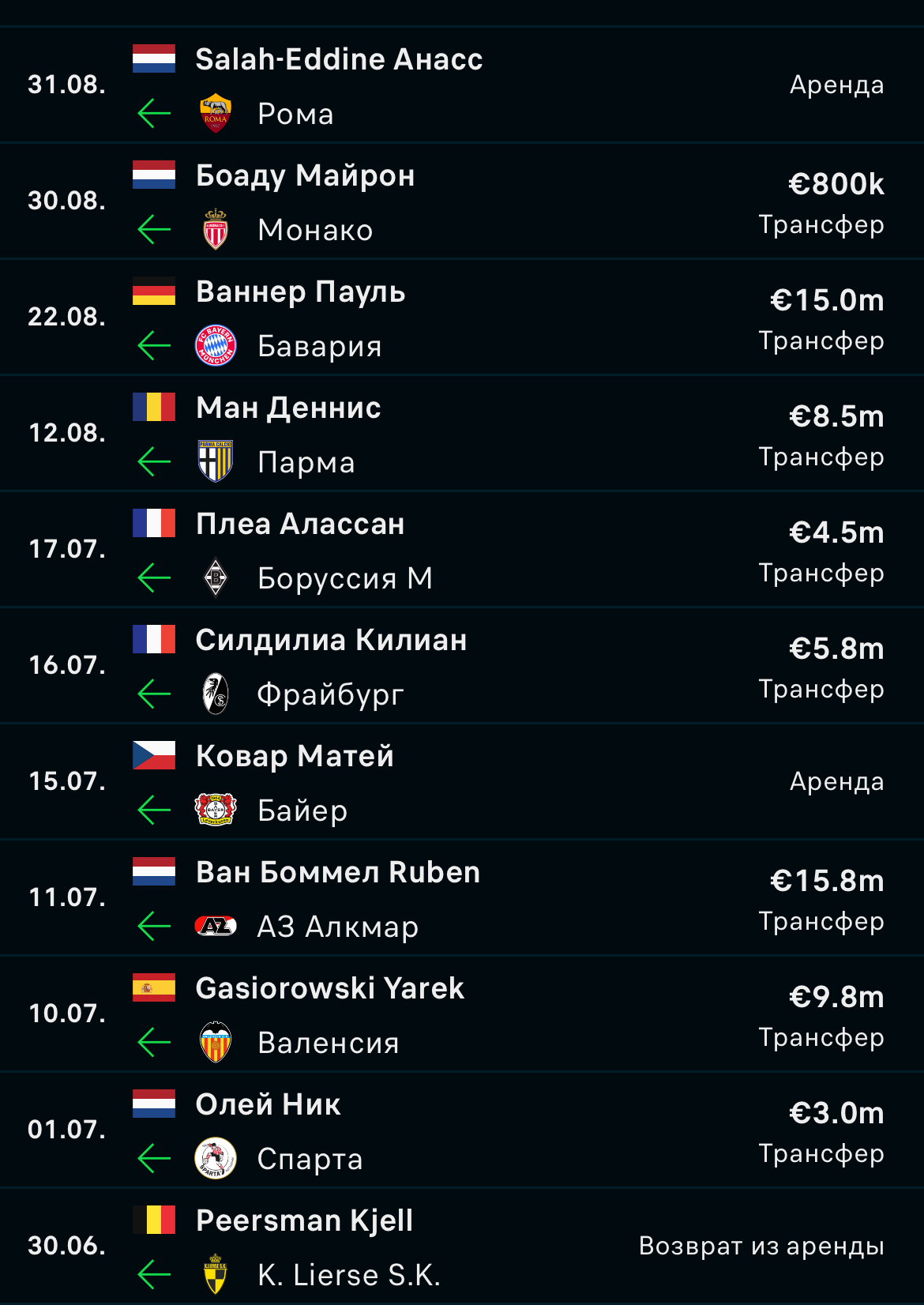По трансферам. Слышал мнение, что клуб отдал самых сильных игроков, а на замену взял заведомо слабых. Тут вынужден не согласиться с таким мнением. Да, Ман и Вагнер кажутся огромными переплатами, но надо дать время. Многие получили травмы и не смогли толком заиграть. Плеа способен заменить Де Йонга, а Ван Боммел спокойно заменит Ноа Ланга. Гасиоровски уже заменил Боскальи. А Салах-Эддине, арендованный у «Ромы» заменяет пока Силдилиу, который тот в свою очередь должен заменить Ледезму/ Маласию. Вечно травмированный Боаду, который не успел получить первые минуты в ЛЧ, сразу же получил травму, спорный трансфер. Но в аренде у «Бохума» он забил 9 голов за 19 встреч, а в «Монако» за 5 лет был понижен от 17 млн€ покупки, до 800 тыс€ продажи.