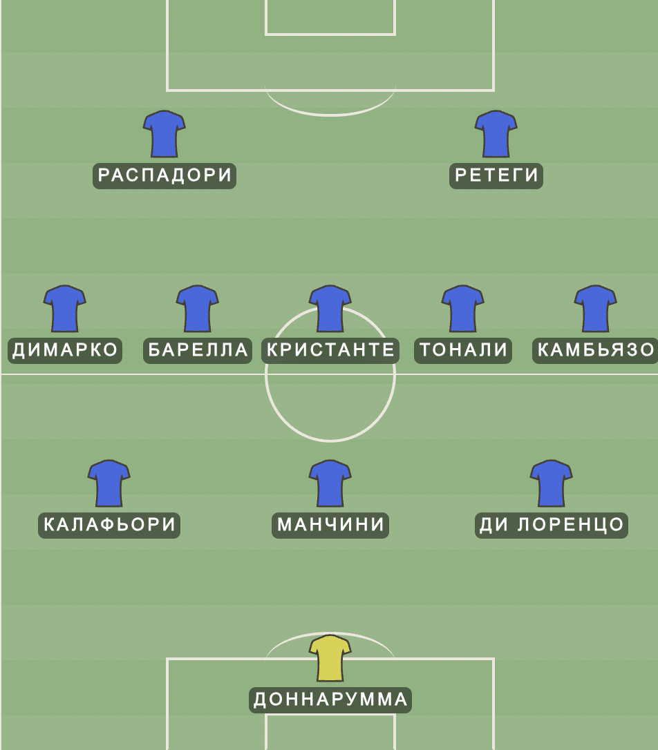 Во втором тайме наверняка появится Спинаццола — он способен заменить любого из двух эстерно и воспользоваться усталостью соперников, чтобы прорываться в дриблинге и на скорости. Даже в Таллине он успел отдать голевую передачу Эспозито и упустить стопроцентный момент, выйдя один на один с вратарем.