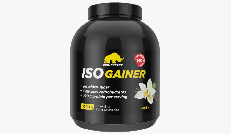 Выпускается форматом 2000 г, рассчитанной на 16 порций, с балансом 30 г белков и около 71 г углеводов на 100 г продукта. В ассортименте представлены интересные вкусы – от вишни и фисташкового до ванильного пломбира, банана и двойного шоколада. Состав продукта включает в себя комплекс углеводов, представленный такими компонентами, как мальтодекстрин, рисовые отруби и гороховый крахмал. Кроме того, в нем содержатся различные формы сывороточного белка, какао, а также натуральные и искусственные ароматизаторы. Для улучшения текстуры и консистенции используются лецитин, загустители и подсластители. Среди биологически активных добавок присутствуют креатин, разветвленные аминокислотные комплексы (BCAA), среднецепочечные триглицериды (MCT) и глютамин.