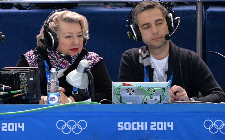 Пик их совместной карьеры – Олимпийские игры-2014 в Сочи. Там парочка запомнилась не только комментариями, но и вот такой фотографией. На церемонии открытия почти на плече у Тарасовой прикорнул Дмитрий Медведев. А на следующий день вместе с Соловьевым Татьяна Анатольевна обыграла эту сценку.