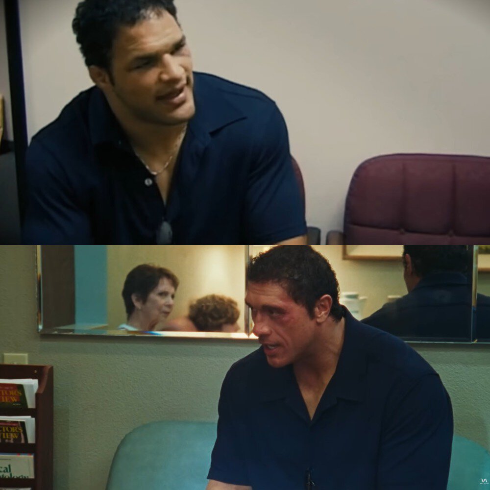 «Крушащая машина» – адаптация старого документального фильма. Там настоящий Марк Керр показывает изнанку жизни звезды ММА