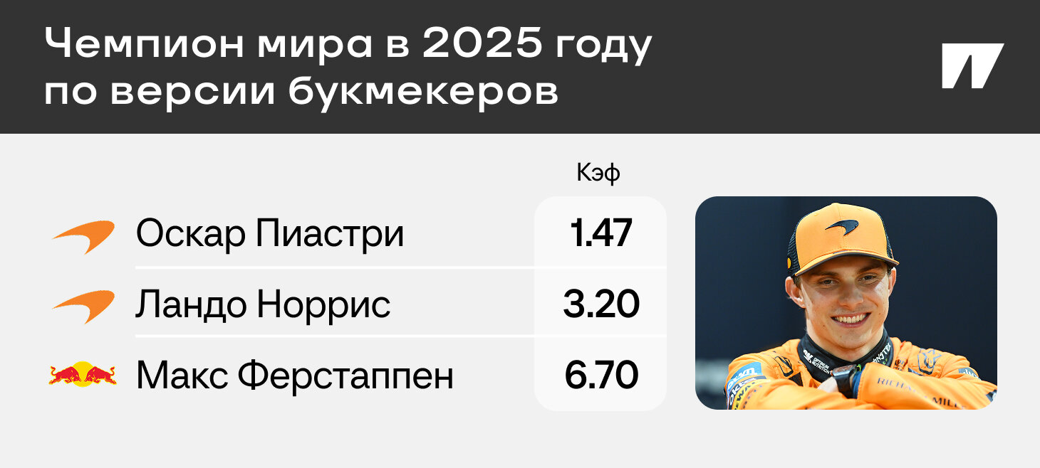 Теперь Макс котируется чуть выше Норриса, а Пиастри поставили третьим. Впрочем, все трое – в очень близком диапазоне.