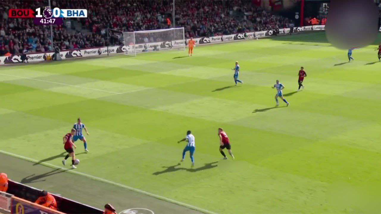 Гол «Брайтону» пришел из похожей ситуации (тайм-код: 0:00).