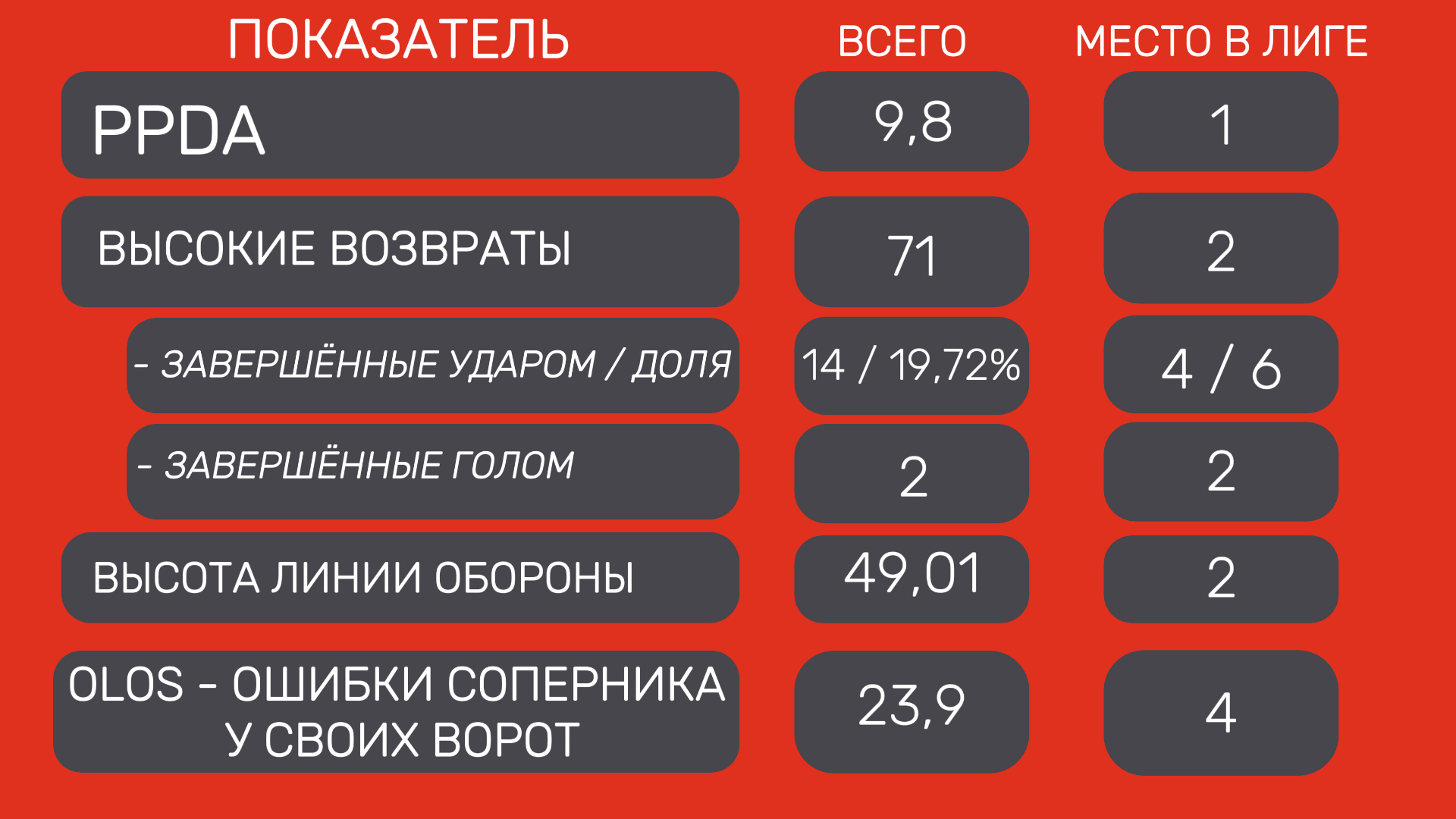 Команда с 12-й трансферной стоимостью и платежной ведомостью меньшей, чем у 15 клубов АПЛ, идет на втором месте в лучшей лиге мира. Прессинг уже в ДНК этого клуба, они не заметили потерю лидеров летом и стремятся в Лигу Чемпионов.