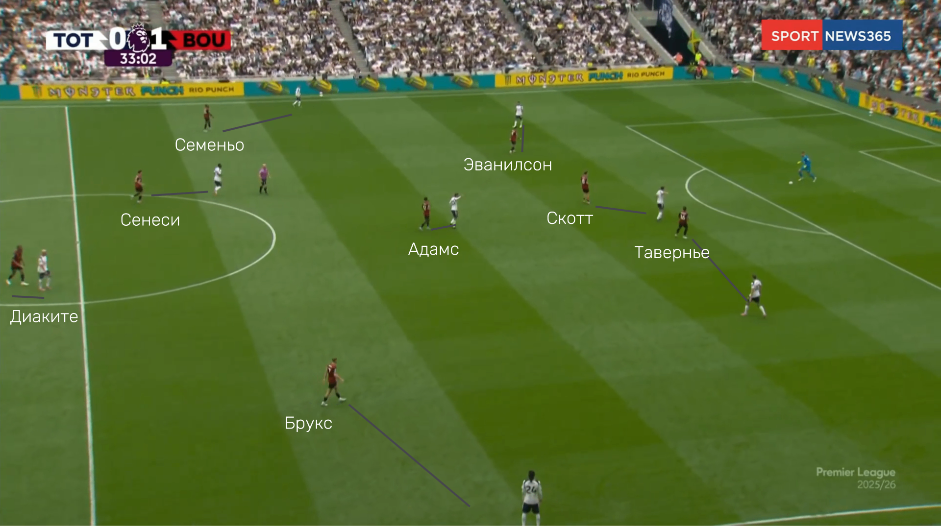 Посмотрите на гол Эванилсона в ворота «Тоттенхэма» или на гол Скотта против «Брайтона». Они случились именно после длинной передачи Сенесии подбора игроками «Борнмута».