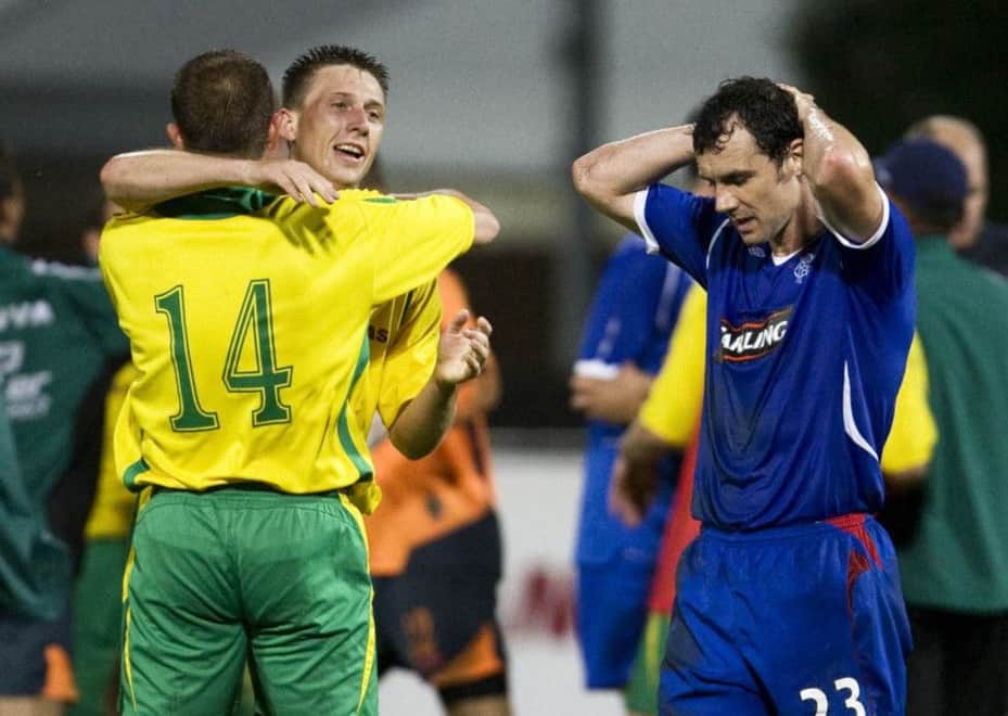 Но когда в следующем раунде клуб получил в соперники недавнего финалиста Кубка УЕФА «Рейнджерс», настрой болельщиков команды наверняка был другим. Интересно, что в 2000 году соперники уже встречались на аналогичной стадии главного еврокубка, и в тот раз «Рейнджерс» уверенно прошел дальше, разгромив соперника дома 4:1 и сыграв затем нулевую ничью в Литве.