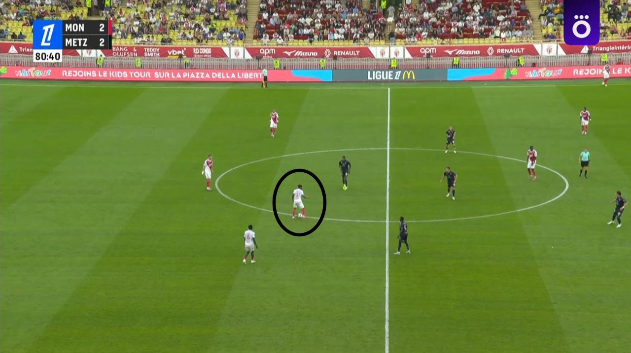 Как работает в «Монако»: Фати спускается, открывается под простой пас, в идеале выманивает соперника, отыгрывает назад, партнер продвигает мяч уже заметнее на третьего. Либо Фати ищет варианты темповых пасов поперек, где есть и свободный партнер, и пространство перед ним, которое можно атаковать. То есть Ансу делает много подготовительных передач в развитии атаки, вдалеке от штрафной.