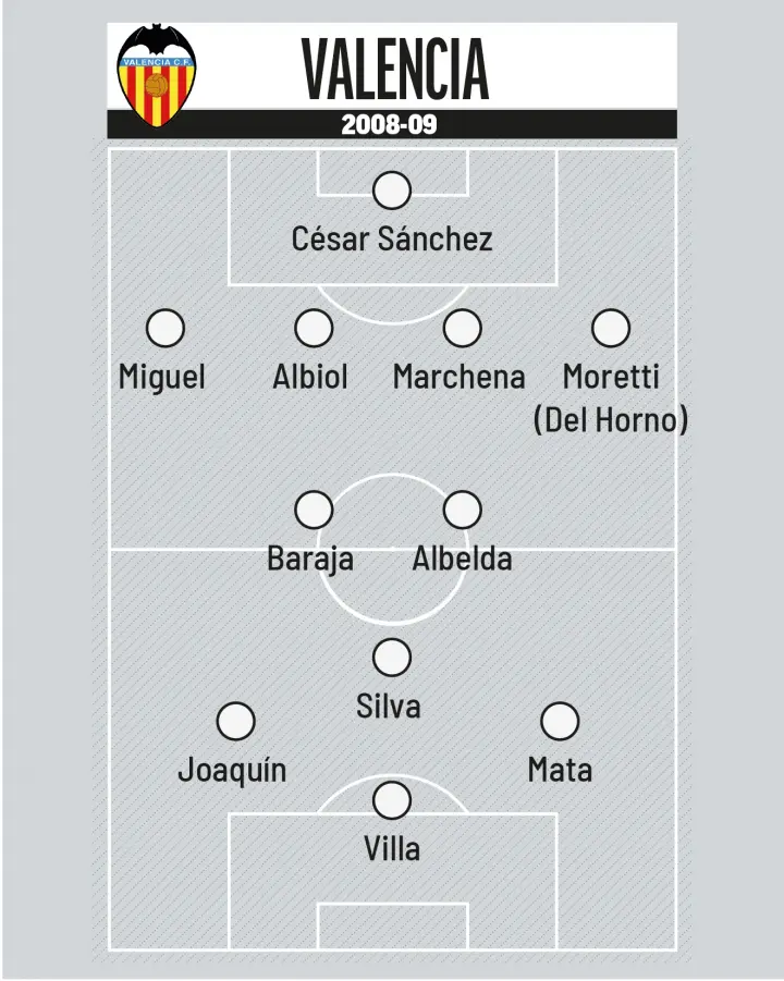 В составе было пять будущих чемпионов мира — Альбиоль, Марчена, Сильва, Мата и Вилья. И всё это под руководством Эмери — мастера организации игры.