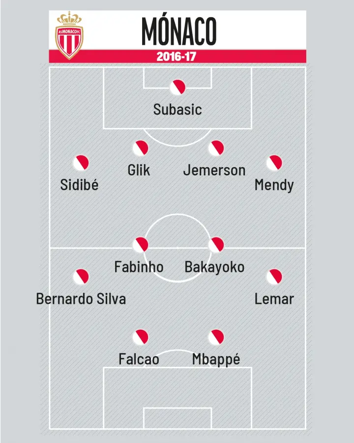 Фантастический сезон. Почти половина состава вскоре разошлась по топ-клубам за огромные деньги: Менди и Бернарду Силва — в «Сити» (57 и 50 млн), Фабиньо — в «Ливерпуль» (45), Лемар — в «Атлетико» (72), Мбаппе — в ПСЖ (180).