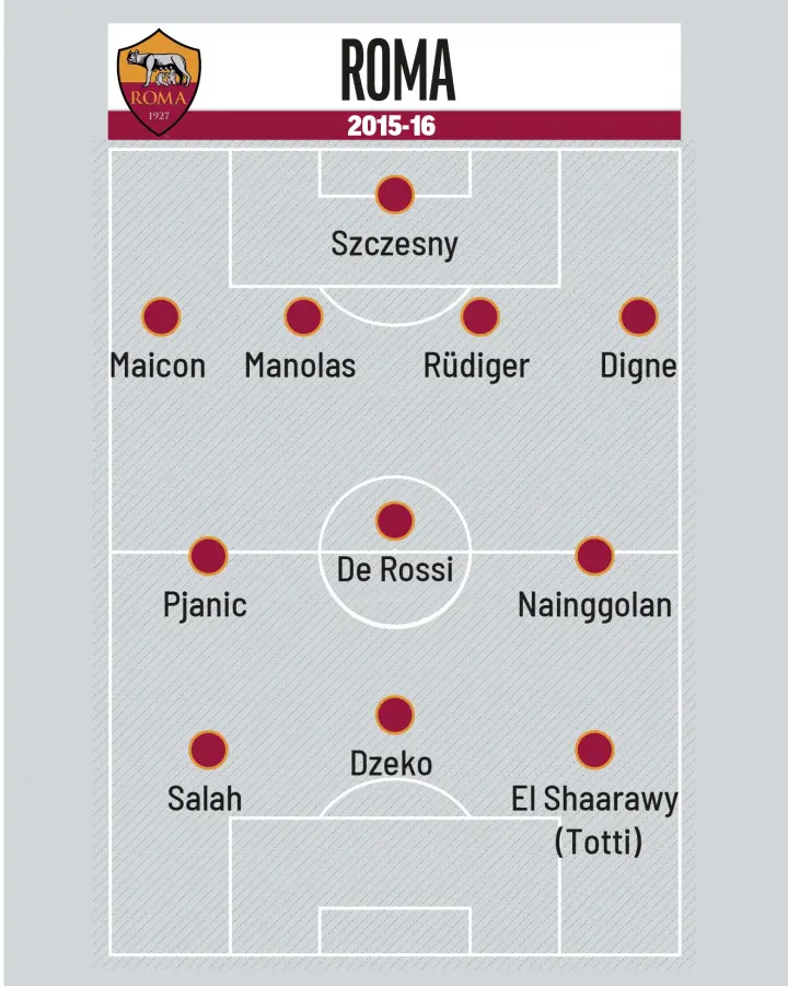 Состав «Ромы» был невероятно силён. В нём играли Мохаммед Салах, Пьянич, Джеко, Наингголан, Манолас, Флоренци, Перотти… Многие из них позже стали звёздами мирового уровня и выиграли крупные турниры. Команда показывала атакующий футбол, но нестабильность на тренерском мостике не позволила ей выжать максимум.