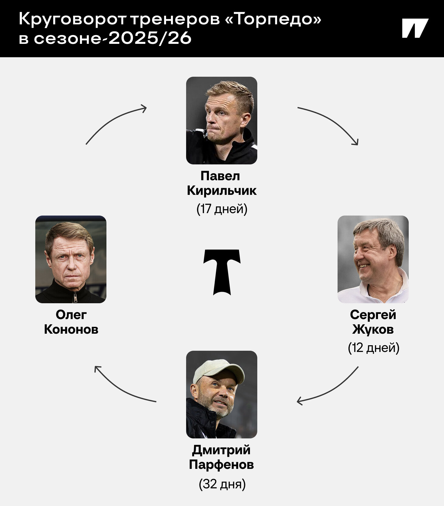 Цирк в «Торпедо»: вернули Кононова. 5-й тренер за сезон, Парфенов продержался 32 дня
