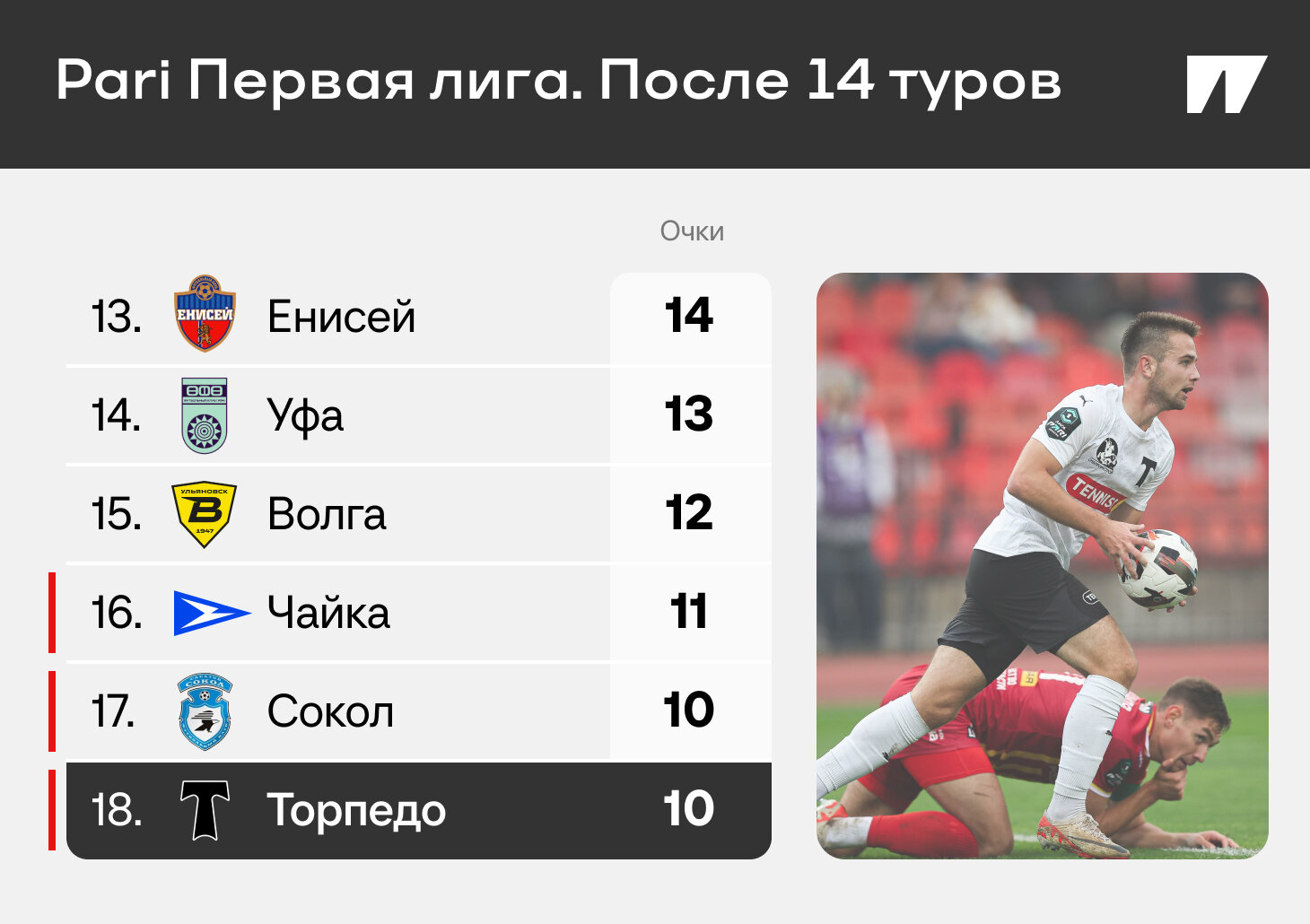 После исключения из РПЛ явно ждали, что «Торпедо» будет вновь бороться за повышение. Но на самом деле команда повалилась: после 14 туров на самом дне.